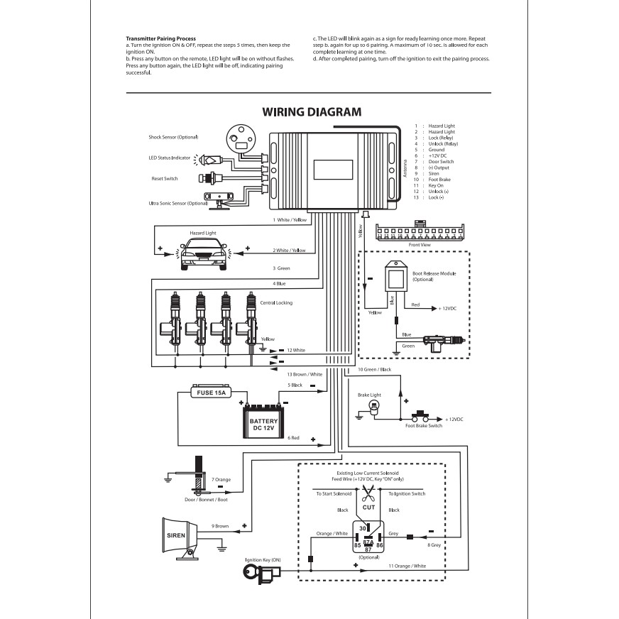 Berdasarkan wire diagram central lock yg saya beli bg tau sambung ke connect remote switch & remote system. Alarm untuk kereta 13 pin ada pelbagai jenis remote dan design sesuai untuk kebanyakkan jenis kereta fungsi boleh rujuk pada gambar terakhir pada diagram . This is not actual circuit as i lost my real diagram. Nak buat wiring central lock. Wiring diagram for car alarm installation.